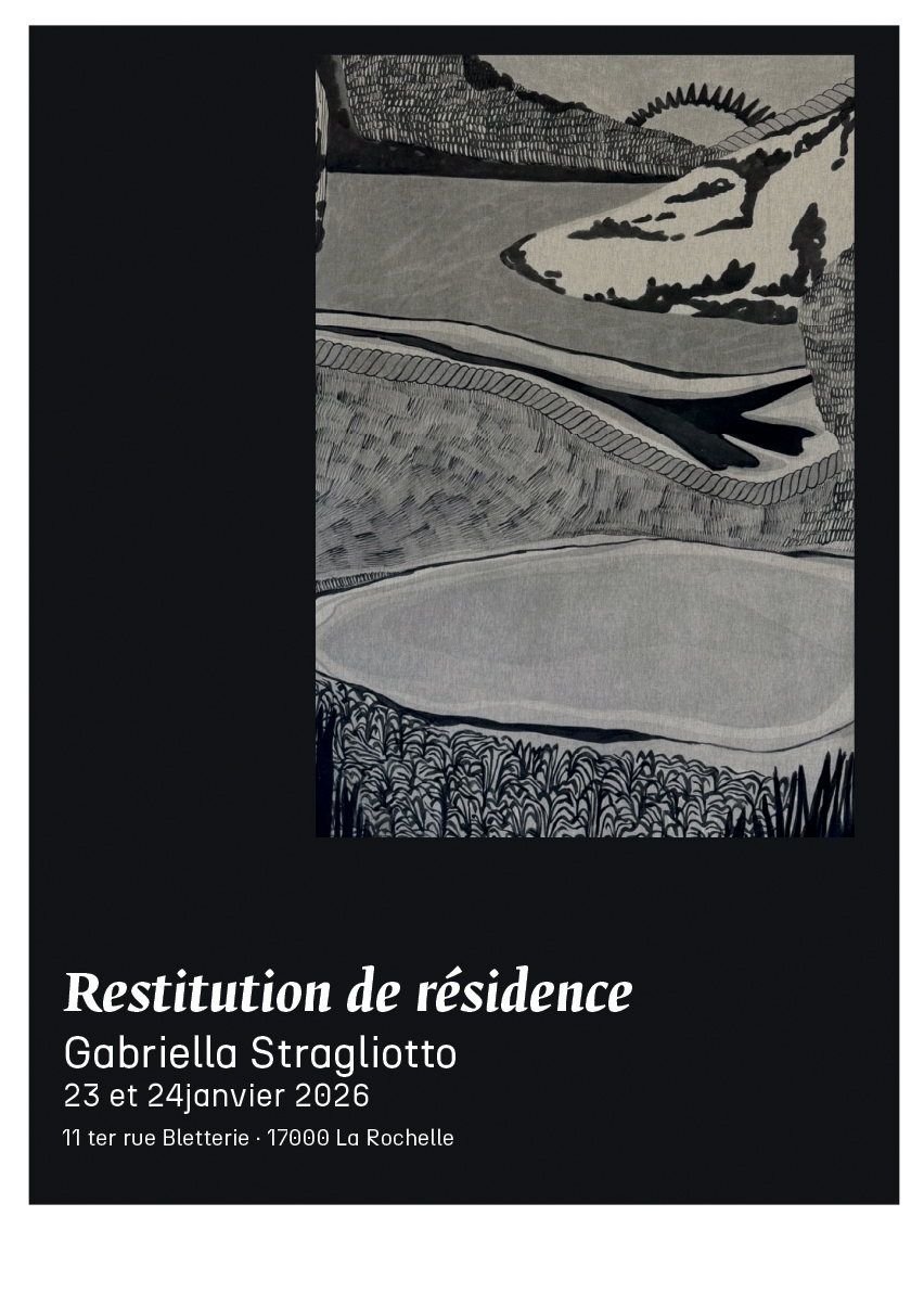 Gabriela est une artiste brésilienne née à Galópolis, Caxias do Sul. Elle a grandi entre le sud du Brésil et l’intérieur de l’État du Mato Grosso, une expérience qui influence profondément sa pratique. Marquée par les environnements ruraux et leurs contrastes avec la vie urbaine, elle crée des paysages fictionnels à la fois étranges et familiers. Son travail explore le paysage à travers la construction et l’abstraction des formes, principalement par le dessin et la peinture, utilisant la peinture à l’huile et l’encre sur toile de lin.Elle est lauréate du 8ᵉ Prix d’Art Contemporain de l’Alliance Française du Rio Grande do Sul, au Brésil, qui lui a permis d’effectuer une résidence artistique à La Rochelle. Durant cette période, elle partage son temps entre le Centre Intermondes et l’Atelier Bletterie, où elle poursuit le développement de sa recherche.Ses peintures récentes explorent les dimensions subjectives du paysage - en particulier celles façonnées par l’eau, telles que les rivières, les lacs, les zones humides et les espaces côtiers - envisagées comme des territoires émotionnels et symboliques liés aux rêves, aux mythes et aux images de l’inconscient. À La Rochelle, ville marquée par une forte tradition portuaire et une histoire liée au commerce maritime et aux routes coloniales, sa recherche s’est progressivement recentrée sur la mer. Dans son travail, celle-ci apparaît comme une matérialisation de l’inconnu, de l’altérité et de l’étranger - un lieu de déplacement, de rencontre et de transformation.